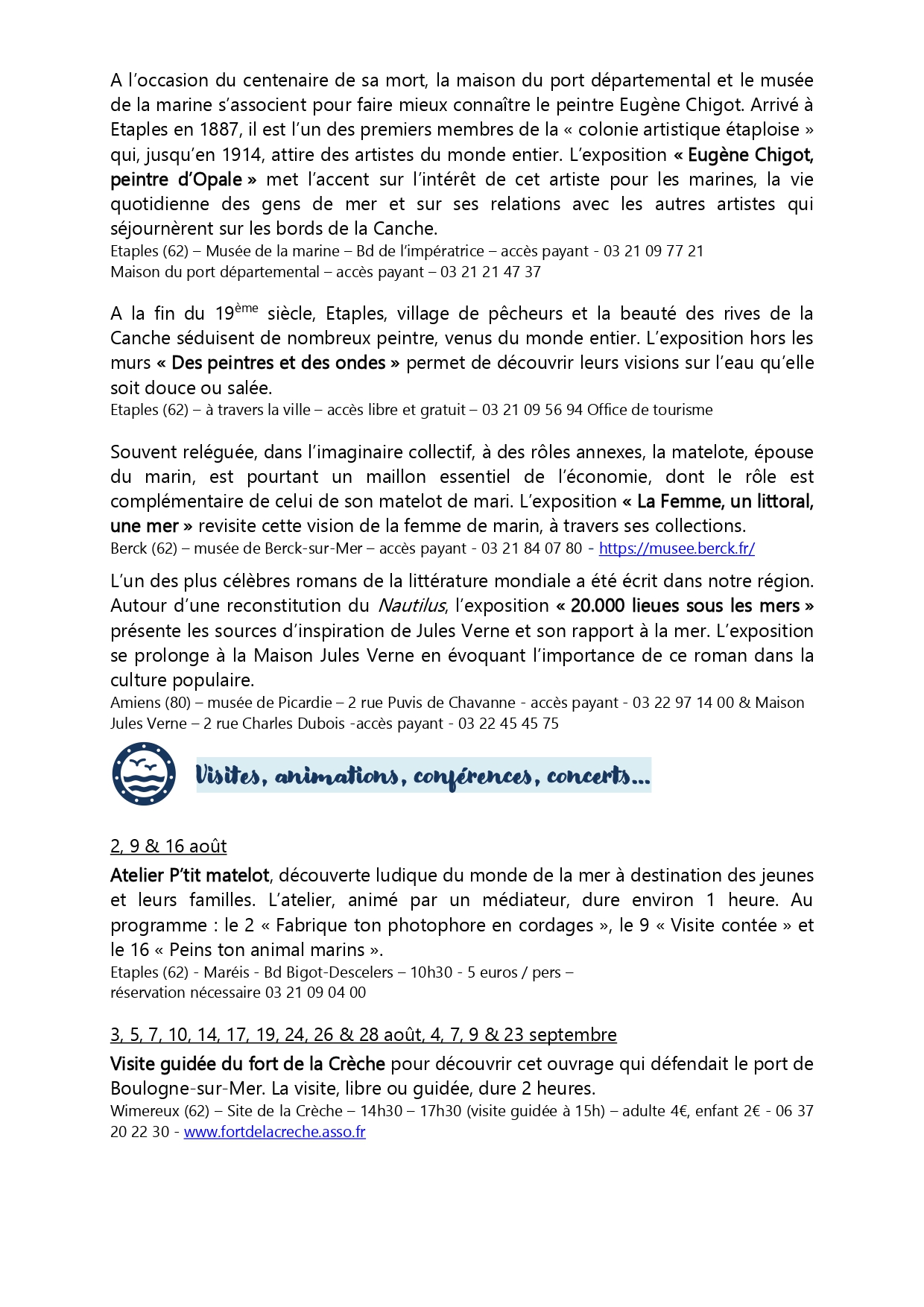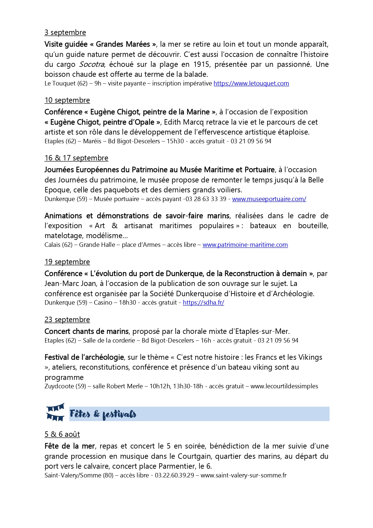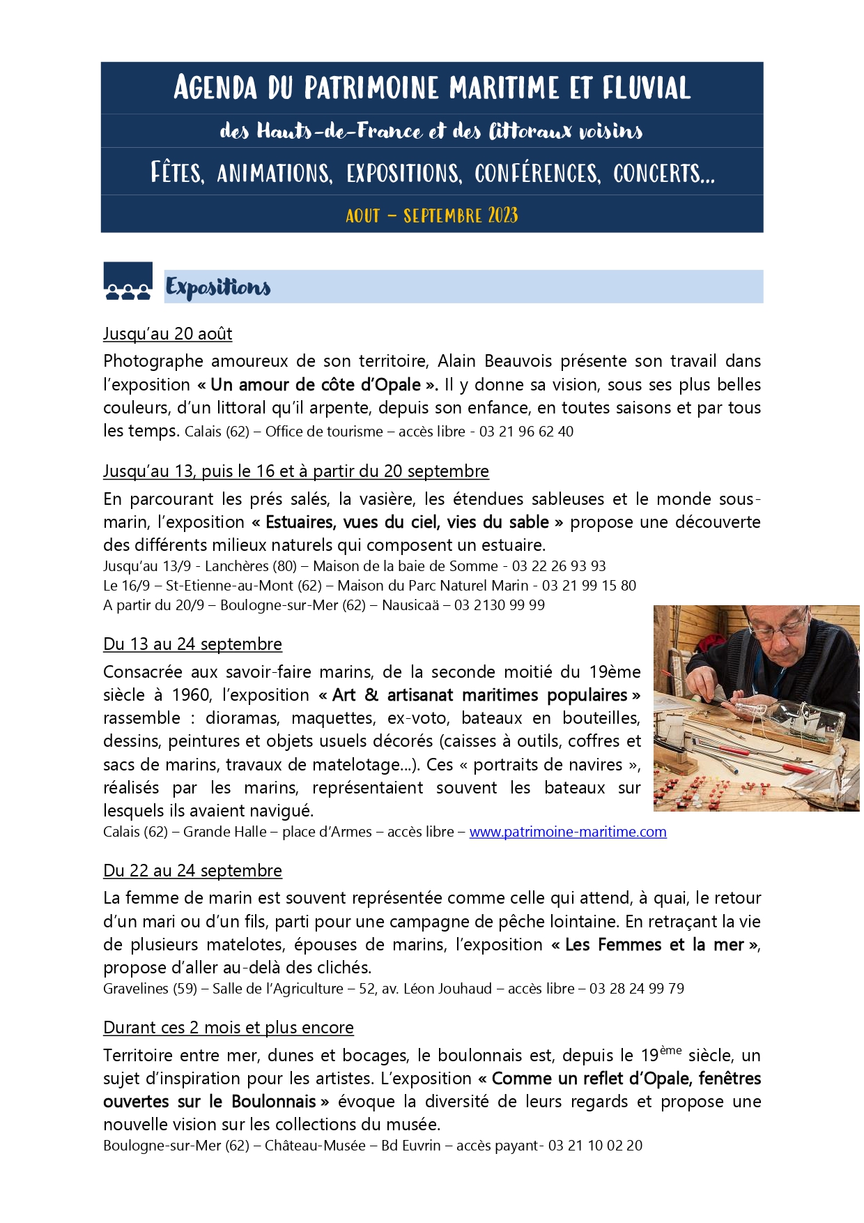 agenda du patrimoine maritime et fluvial en Hauts-de-France pour la période août-septembre 2023.