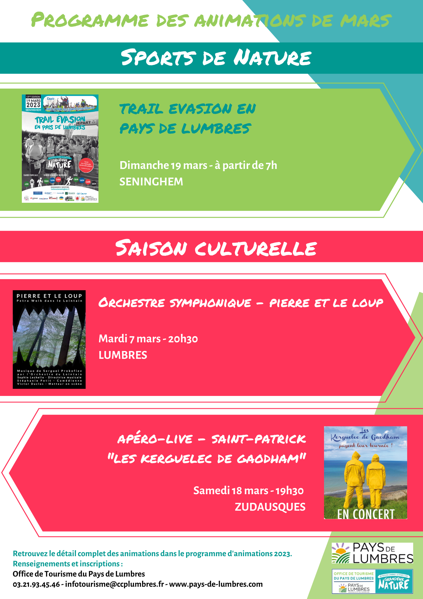 Les animations reprennent à compter de ce mois de mars en Pays de Lumbres !