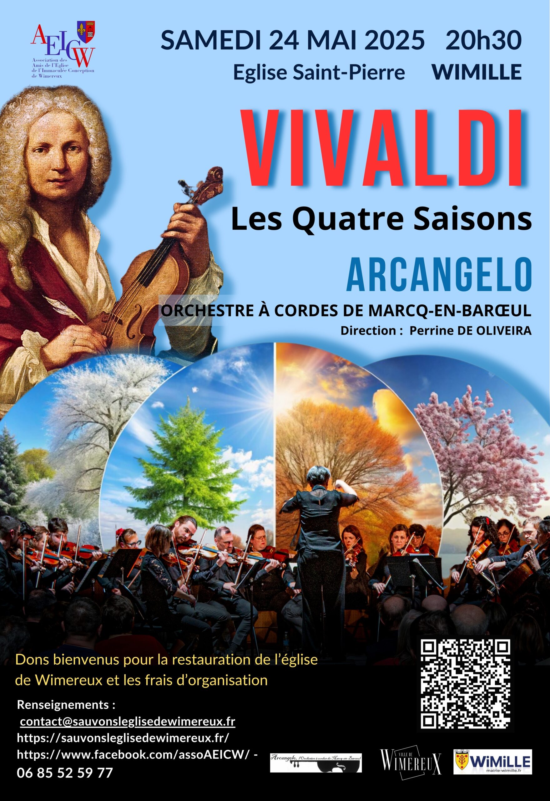 Après ses très beaux concerts de 2023 et 2024, l'orchestre à cordes Arcangelo de Marcq-en-Baroeul revient sous la direction de Perrine De Oliveira. Il vous propose cette année sa version de ce chef-d'œuvre incontournable du répertoire pour cordes. Dans l'esprit d'échange et d'amitié qui fait le ciment de l'orchestre, ce seront 4 solistes issus de ses rangs qui mettront leur violon au service de ces concertos. Composés en 1724, les 4 concertos pour violon sont les premiers du cycle intitulé « Le combat de l'harmonie et de l'invention ». Ils représentent l'émergence du concerto pour soliste moderne, où le violon prend son indépendance et déploie sa virtuosité et son expression.