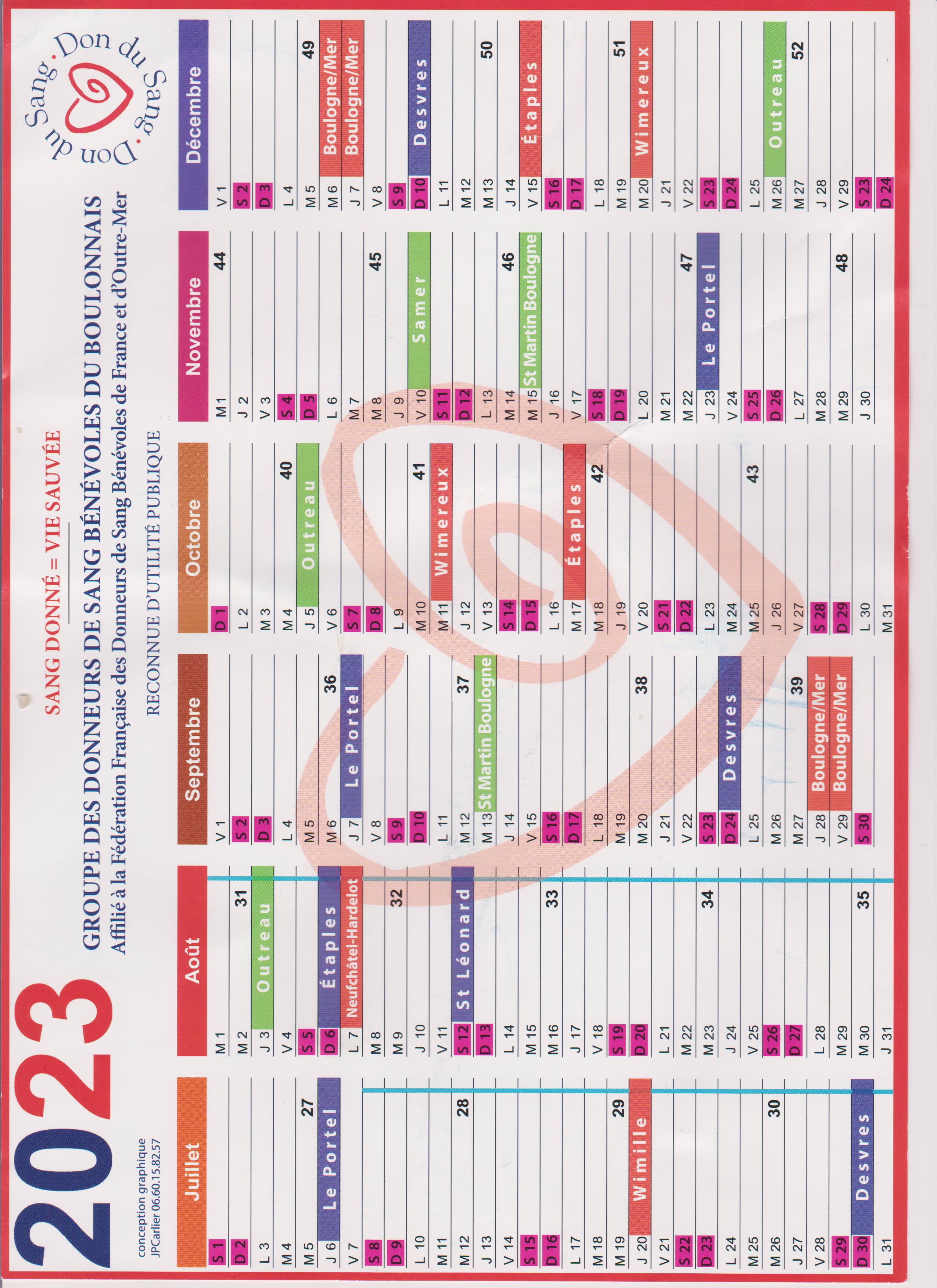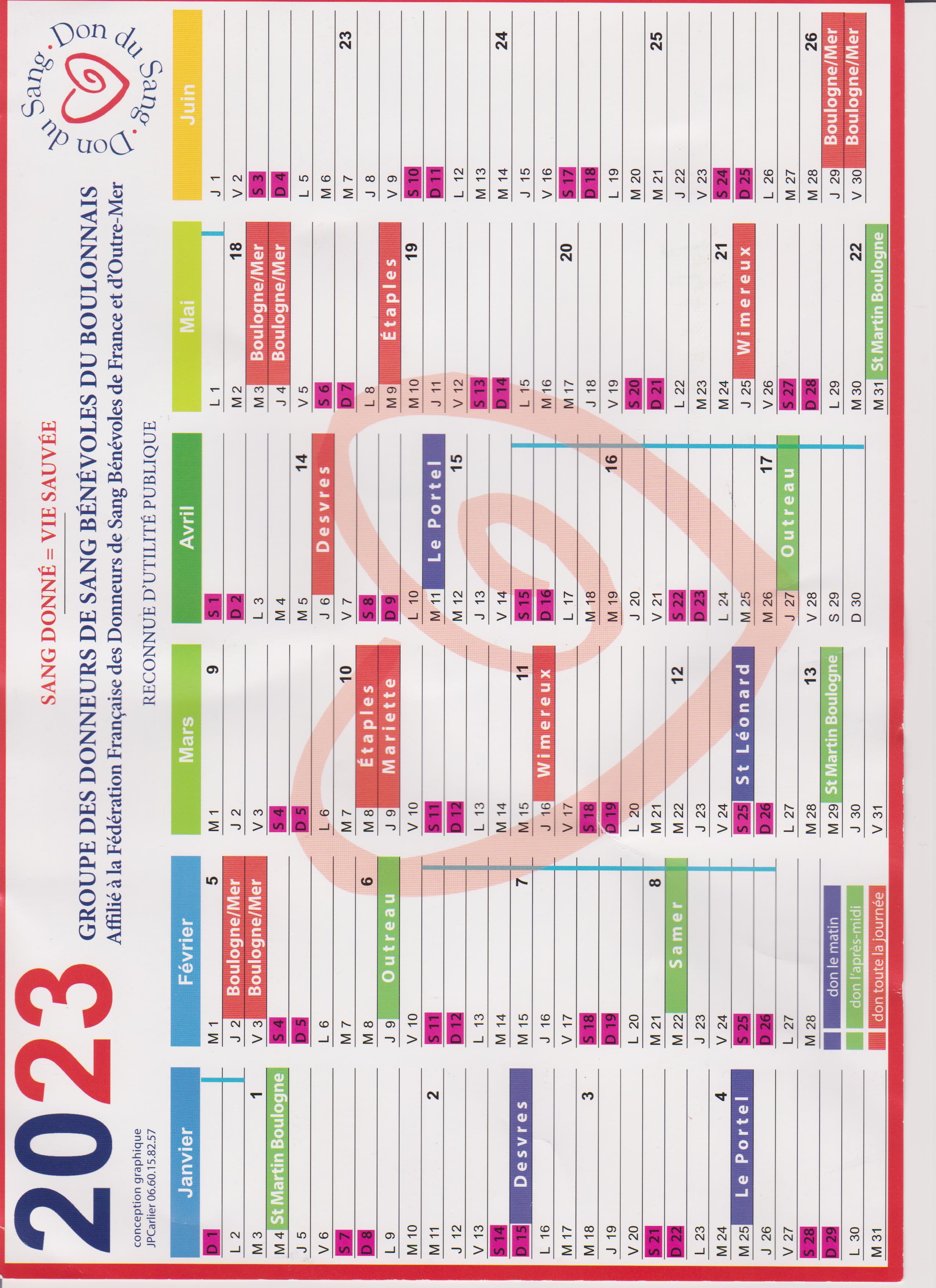 Calendrier des dons de sang dans le Boulonnais en collecte mobile pour 2023.