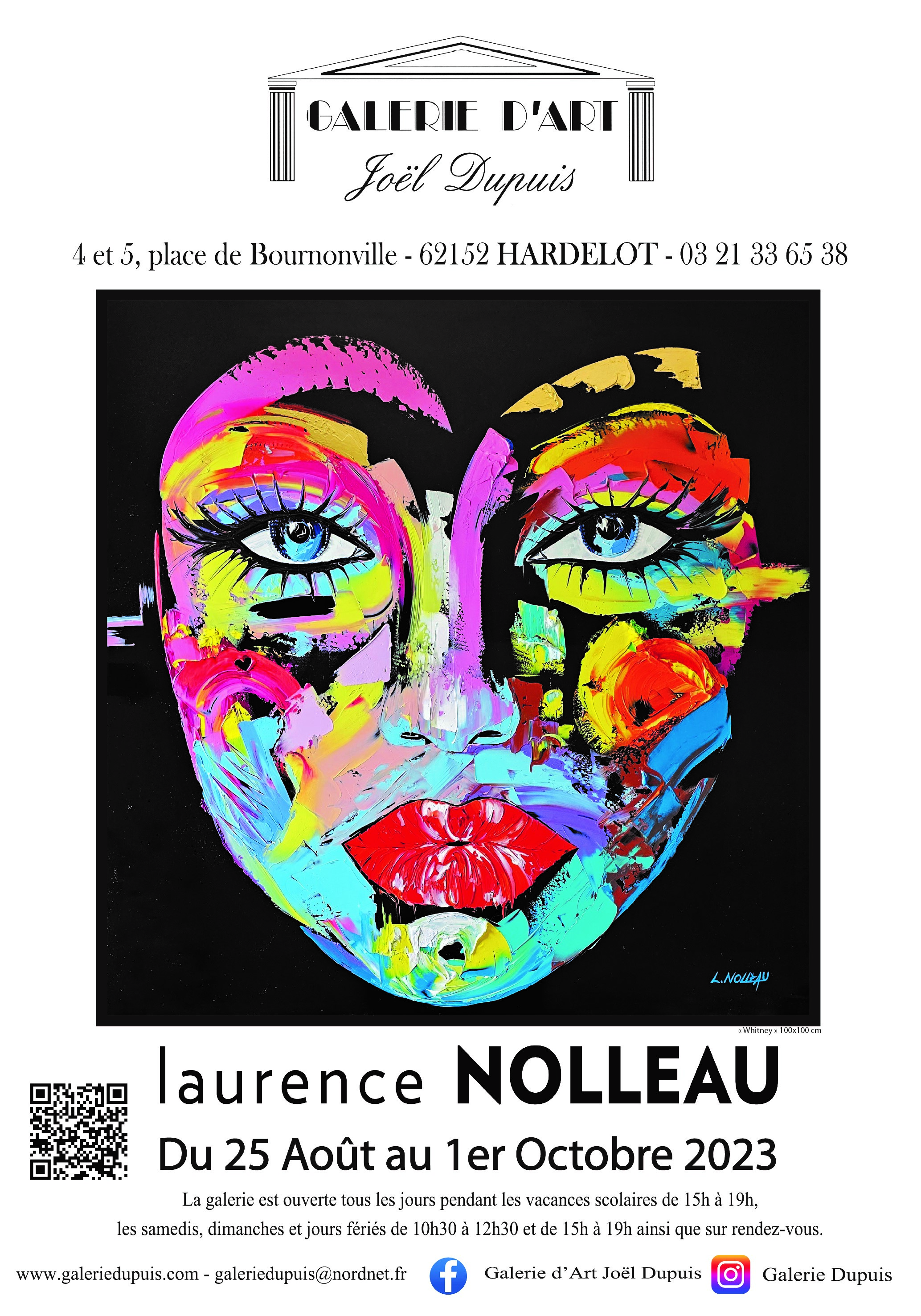exposition des œuvres de Laurence Nolleau, artiste de renommée internationale, du 25 août au 1er octobre 2023, à la Galerie Dupuis à Hardelot.