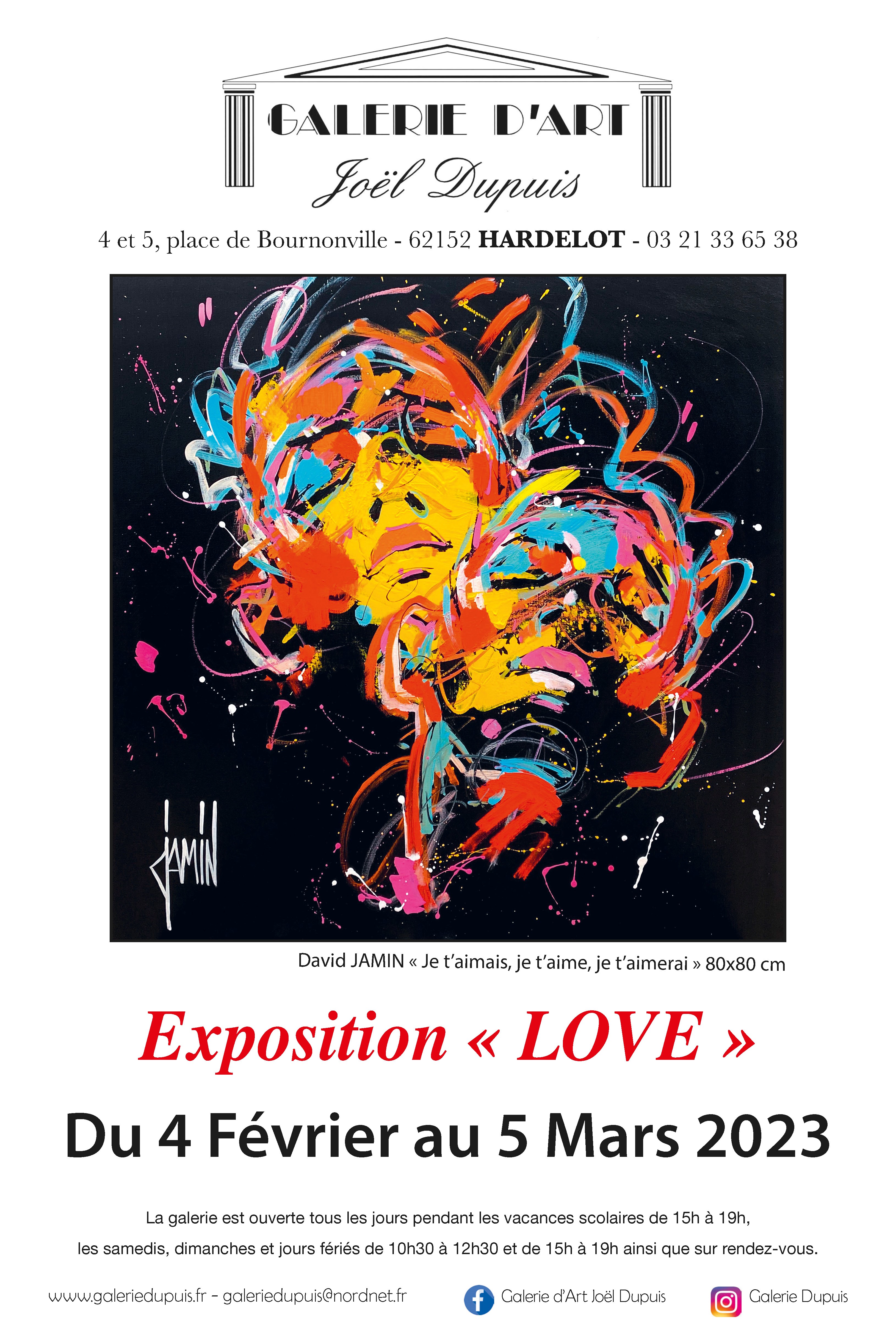 exposition « Love » organisée à Hardelot du 4 février au 5 mars avec les peintures de Virginia Benedicto, David Jamin, Muriel Matt, Manuel Rubalo et les sculptures de Virginia Benedicto.