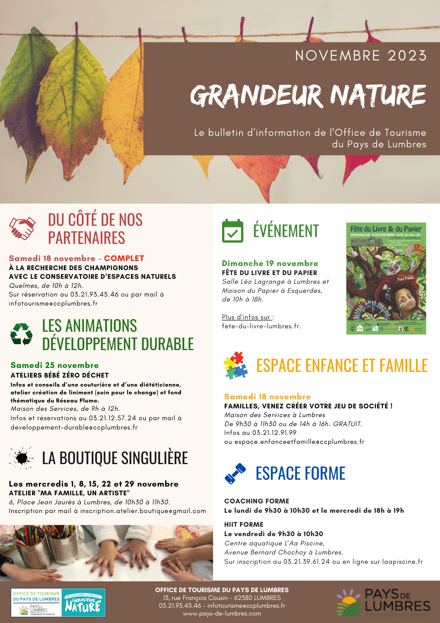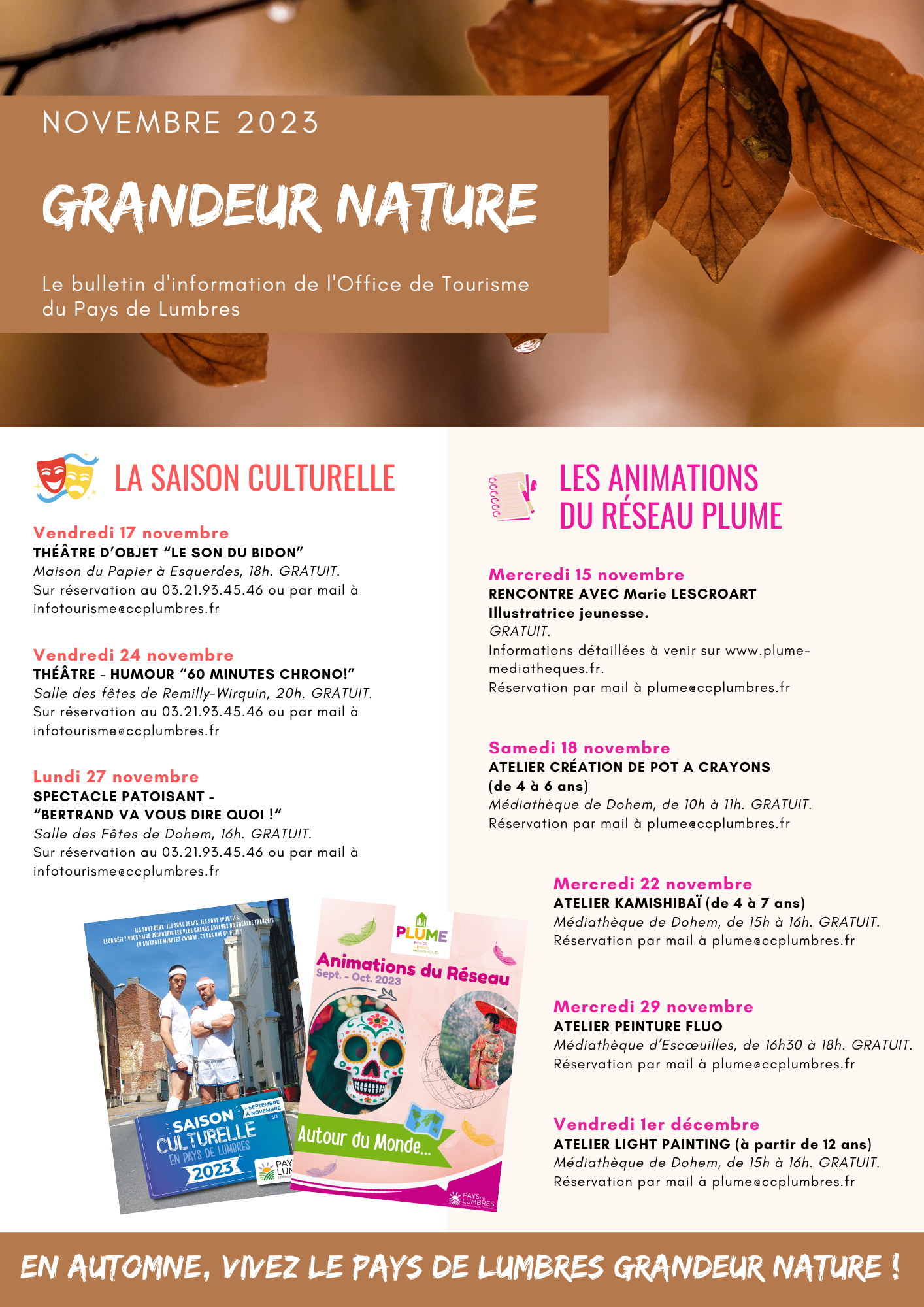 Pour rappel, toutes nos animations sont sur réservation au 03.21.93.45.46 ou infotourisme@ccplumbres.fr