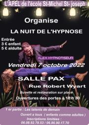 L'APEL de l'école St Michel St Joseph organise la nuit de l'hypnose avec Alex l'Hypnotiseur.