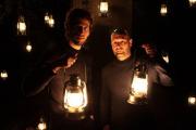 Sous un arbre éclairé, deux hommes vous invitent à suspendre le temps et à écouter des histoires sombres et envoûtantes, à la lueur de flammes suspendues.