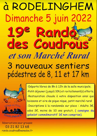 Les départs et les arrivées s'effectuent à la Salle des Fêtes de Rodelinghem et les inscriptions sont prises sur place.
