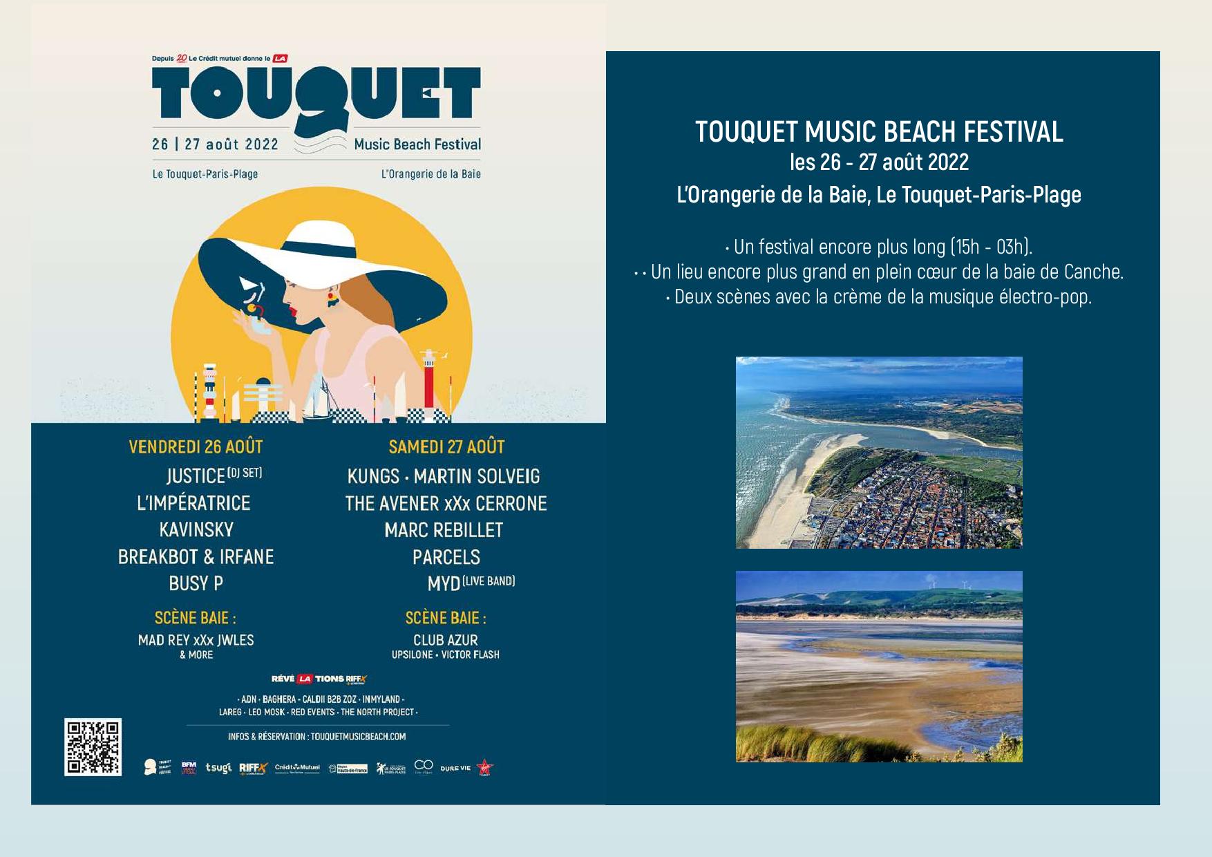 Pass et tickets jour disponibles dans tous vos points de vente habituels ainsi qu'à l'Office de Tourisme et sur www.touquetmusicbeach.fr