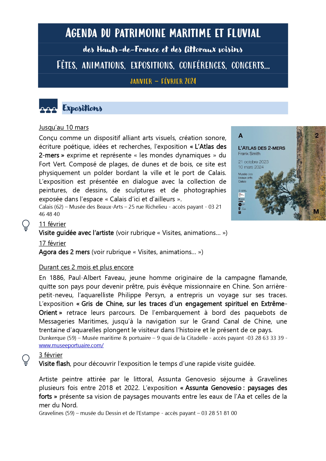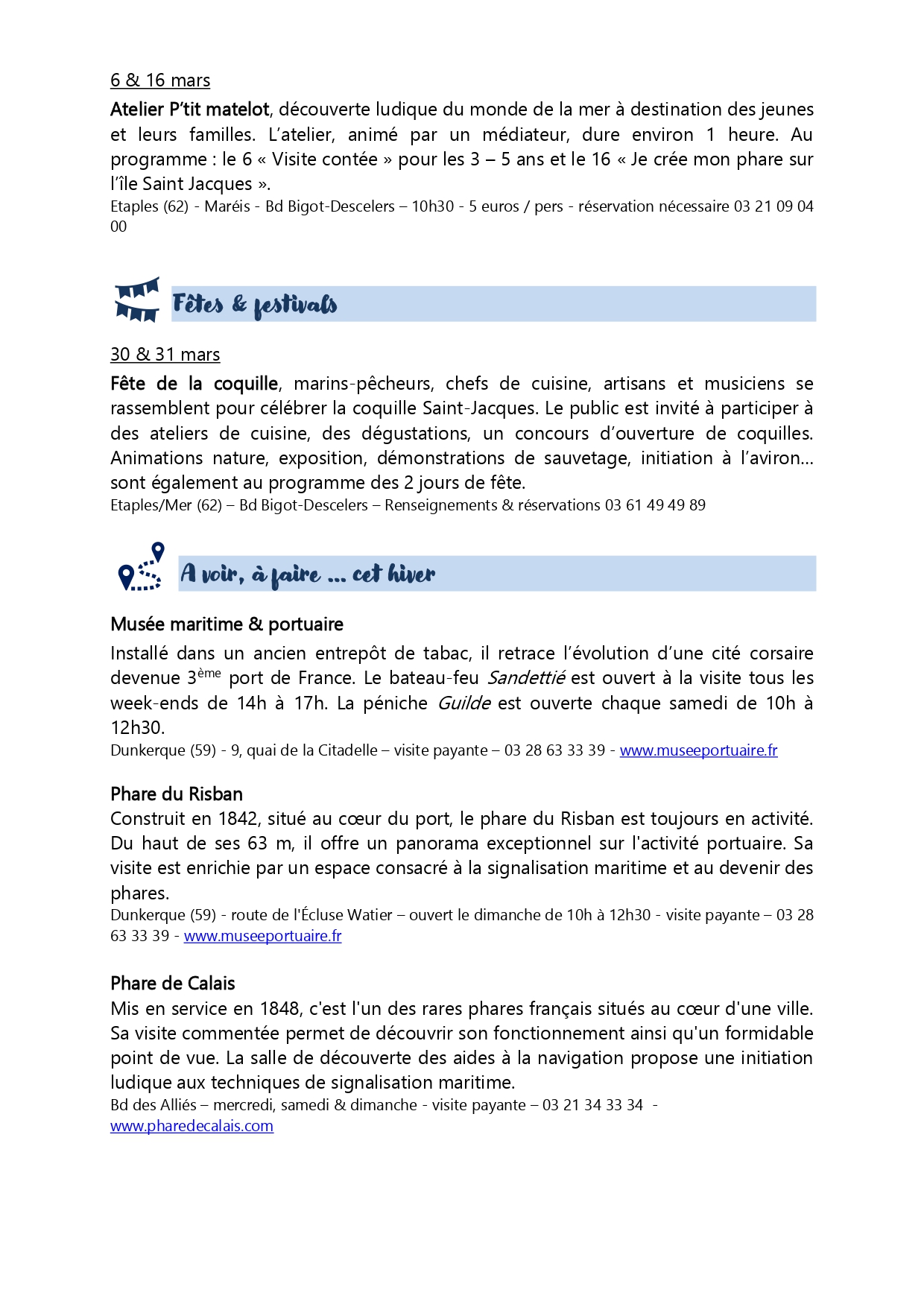 En fin d'agenda, vous trouverez un point sur les sites et musées maritimes ouverts à la visite cet hiver.