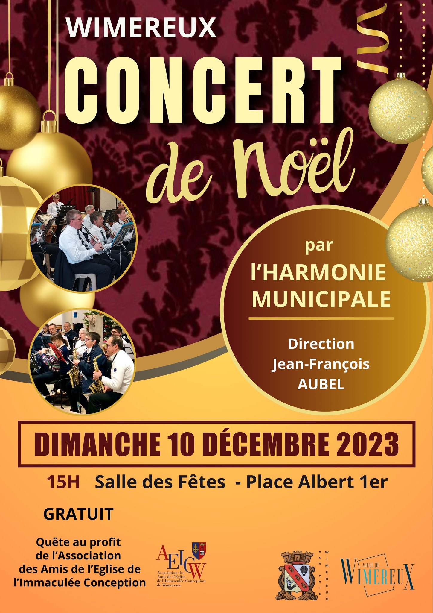 C'est avec joie que nous vous invitons au concert de Noël que l'Harmonie municipale donnera au profit de la restauration de l'église le dimanche 10 décembre et à notre marché de Noël.