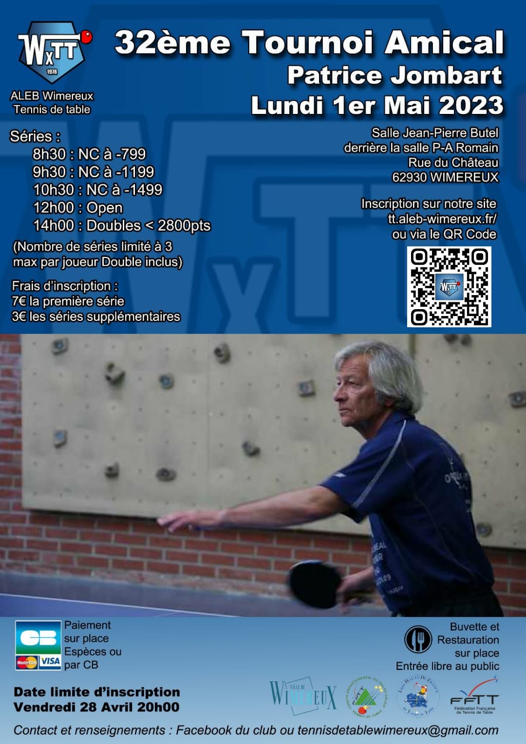 Dimanche 1 mai 2023 : 32ème tournoi de Tennis de Table de l'Amicale Laïque des Ecoles du Baston (ALEB) de WIMEREUX (62930)