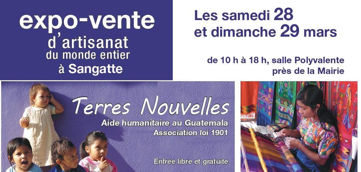 L'association TERRES NOUVELLES vous invite à son EXPO-VENTE D'ARTISANAT DU MONDE ENTIER avec la participation d'Amnesty International.