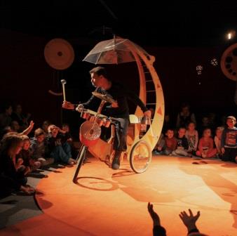 Ils disparaissent par moments dans un espace secret, donnent l'impression de ramener d'un grenier mystérieux leurs trésors cachés et s'émerveillent sous nos yeux de leurs trouvailles : un orgue à bottes, un souffle-bouteille, un vélo percussif, un harmonica de verre, une famille de piverts qui joue du bec en cadence...