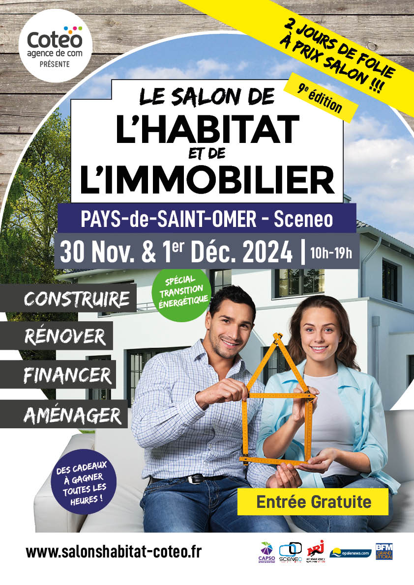 L'agence Coteo, avec le soutien de la CAPSO vous donne rendez-vous pour la 9ᵉ édition du Salon de l'Habitat et de l'Immobilier du Pays de Saint-Omer.