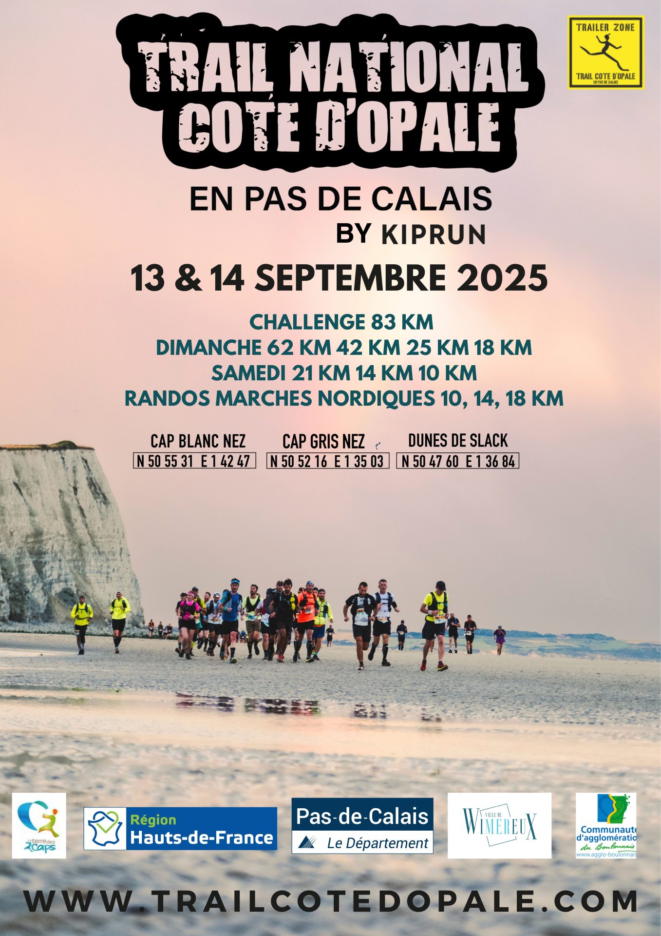 Le Trail Côte d'Opale en Pas de Calais est devenu en Dix neuf années l'événement phare du Sport Nature au Nord de Paris. Cette année plus de 7000 Trailers venus de toute la France et d'une quarantaine de pays seront sur les différentes lignes de départ pour essayer de terminer les 8 épreuves organisées sur le Week end .