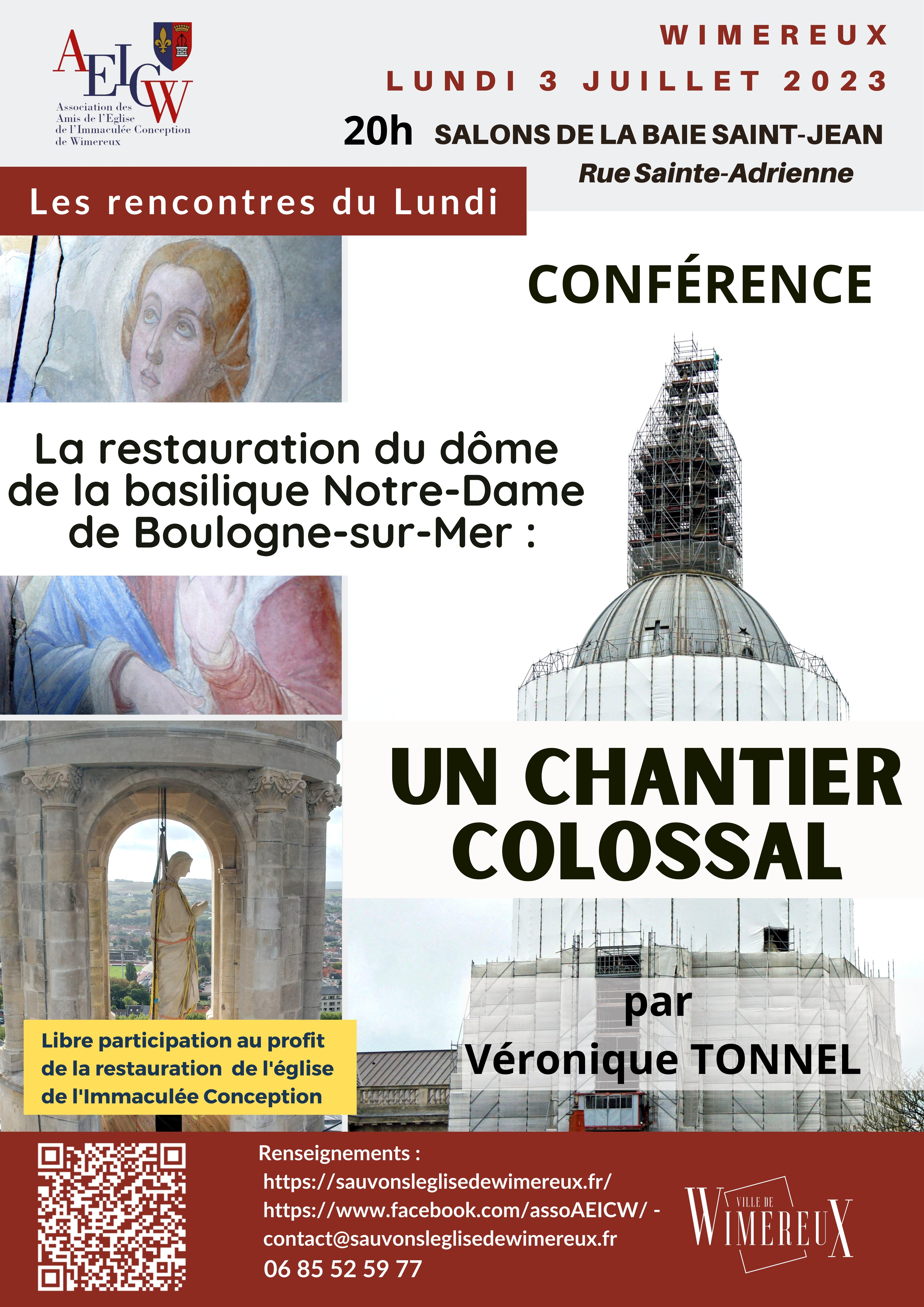 Lundi 3 juillet 2023 à 20h, les rencontres du lundi - Conférence : « Un chantier colossal » : la restauration du dôme de la basilique Notre-Dame de Boulogne-sur-Mer » par Véronique Tonnel